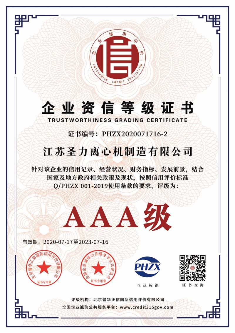 江蘇圣力離心機(jī)制造有限公司是國內(nèi)分離機(jī)械行業(yè)中主要的離心機(jī)生產(chǎn)企業(yè),對(duì)離心機(jī)的研究、設(shè)計(jì)、制造有多年的歷史,擁有齊全的設(shè)備、完善的檢測(cè)手段。公司已通過IS09000國際質(zhì)量體系認(rèn)證、ISO14001環(huán)境管理體系認(rèn)證、ISO45001:2018職業(yè)健康安全管理體系認(rèn)證和CE認(rèn)證,是江蘇省高新技術(shù)企業(yè),曾榮獲國家和地方多項(xiàng)榮譽(yù)稱號(hào)。
